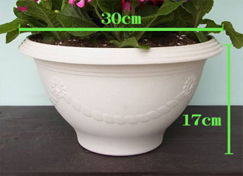 可愛い模様の入ったオフホワイトの鉢に植えました。お庭や玄関先をパッと明るく華やかにしてくれます。